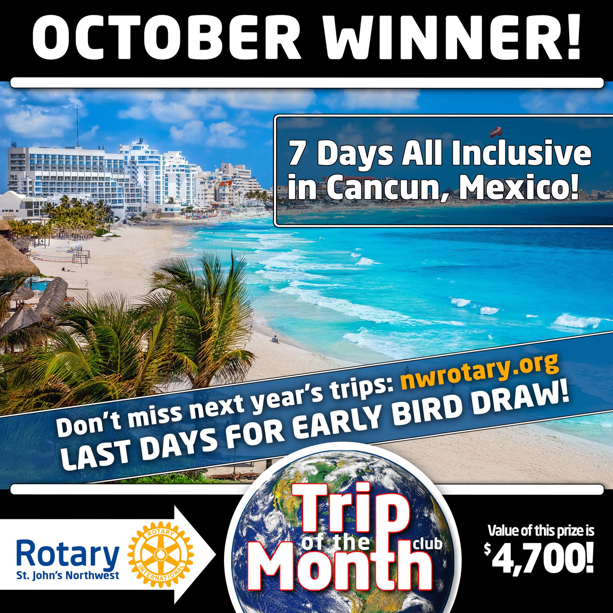 Draw #12, the final draw for this year’s Rotary Trip of the Month travel club membership, was held on October 7, 2025.