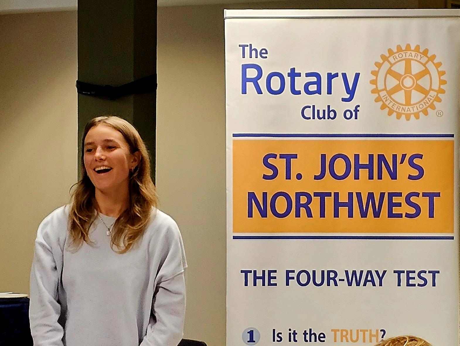 We were delighted to welcome Tanuya Oesterlein to her first club meeting! Tanuya is a 17-year-old student from Switzerland, here in St. Johnβs for the 2025β2026 school year as part of the Rotary Youth Exchange program.